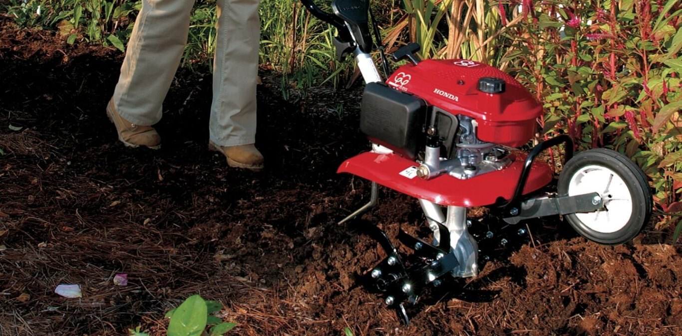 Mid-Tine 21" Gardening Tiller Light and easy-to-transport, the Honda Mid-Tine 21" Gardening Tiller is perfect for flowerbeds and vegetable gardens. |