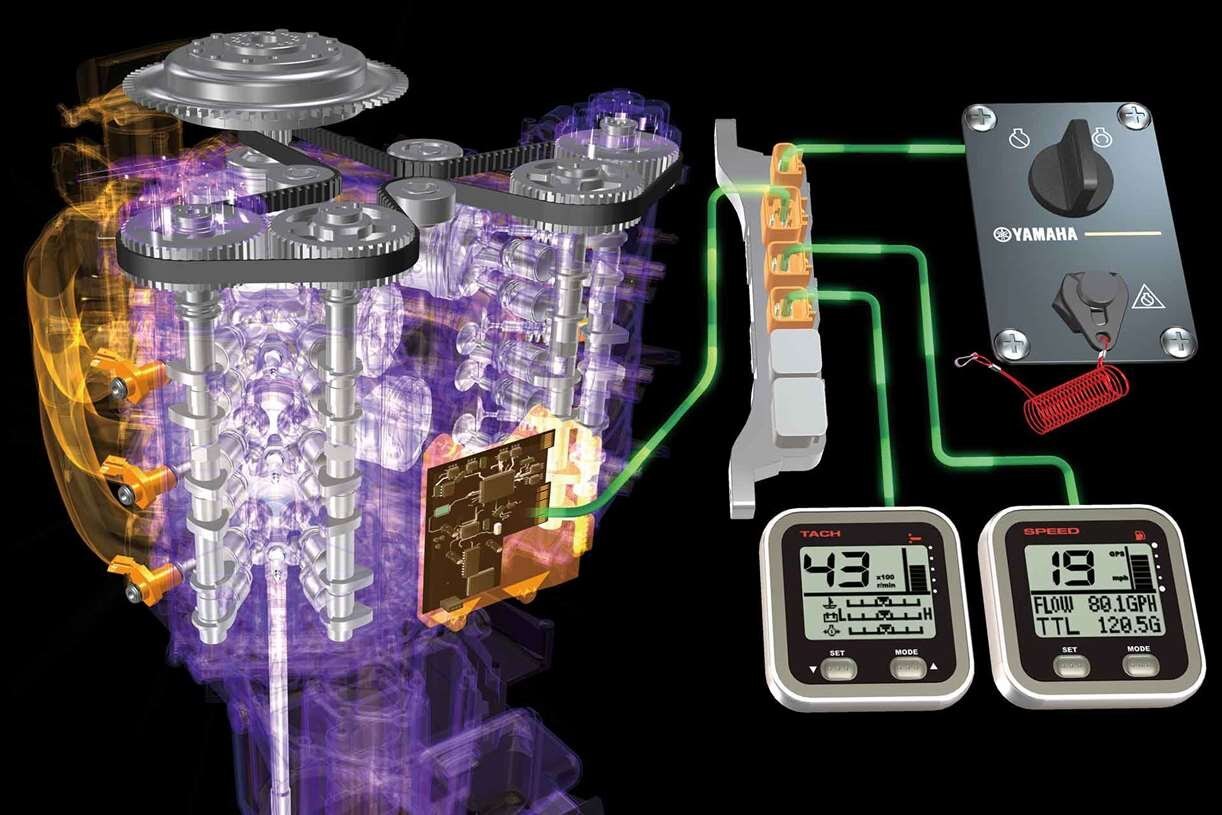 Averaging 12% better fuel economy throughout the RPM range than our venerable 3.3-litre direct-injected 250 hp V MAX Series 2 two-stroke. Air entering the engine is routed through a single 75 mm electronically controlled throttle valve. Working in concert with the Precision Multi-Point Fuel Injection System, they ensure the precise amount of air and fuel necessary for optimum power and fuel efficiency.